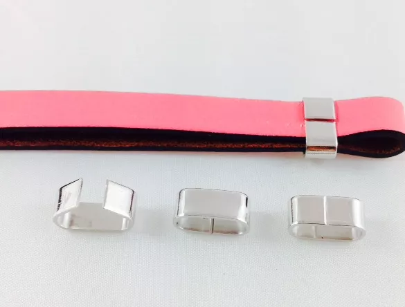 Fermoir crochet, pour cuir 5mm x2 , en zamac plaqué argent.