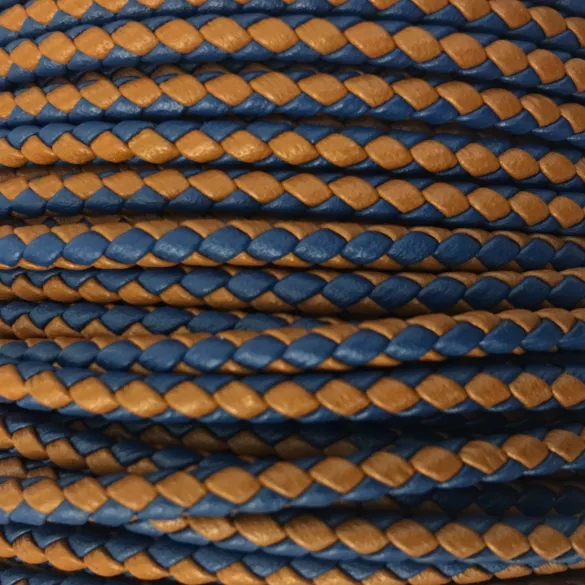 Cuir tressé rond 3mm en bicolore-nouvelles couleurs - Bleu et camel