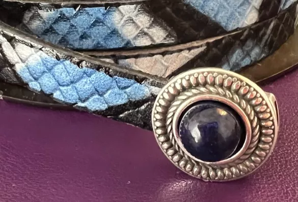 Fermoir aimanté Oeil de Tigre ou lapis lazuli pour cuir 10mm - Bleu