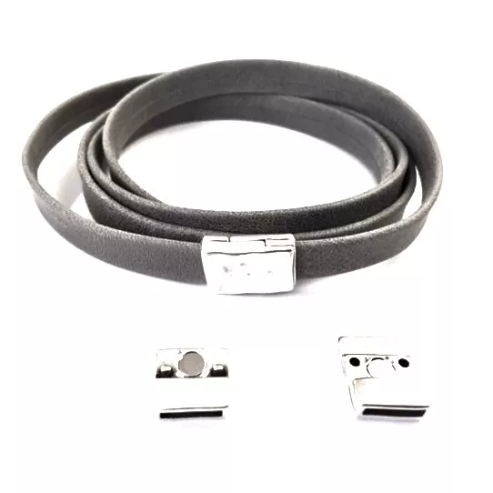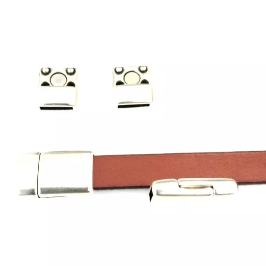 5Fermoirs aimantés en zamac avec securité pour cuir plat 10mm - Argent