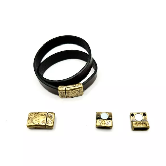 5 Fermoirs aimanté en boucle de ceinture martelé, en zamac pour cuir plat 10mm