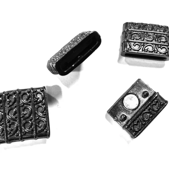 Fermoir aimanté en étain pour cuir 15mm plaqué argent motif spirale - Noir