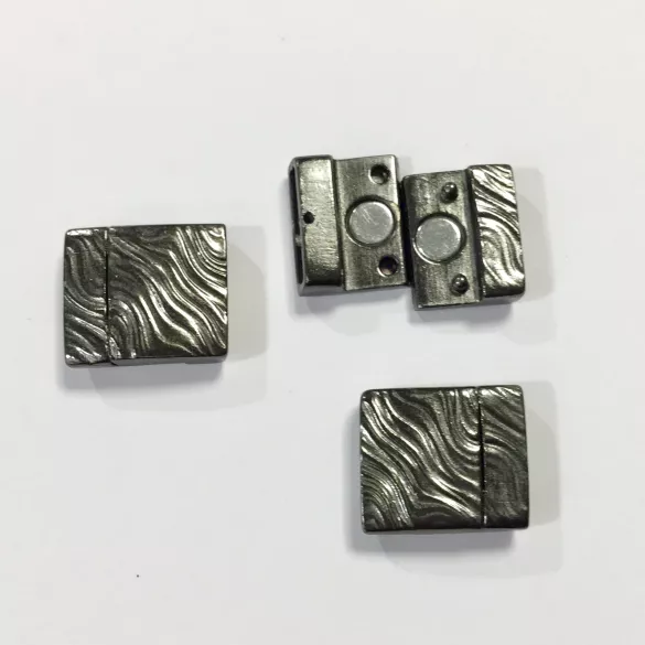 Fermoir aimanté en étain pour cuir plat 15mm motif vagues - Noir Argent Bronze or rose