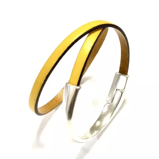 Demi jonc aimanté pour cuir plat 5mm ARGENT VIF OU ANTIQUE - Argent vif