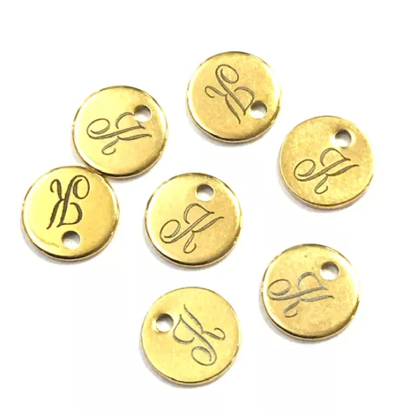Pendant en laiton 10mm doré à l'or fin 1micron en FR avec gravure inclue