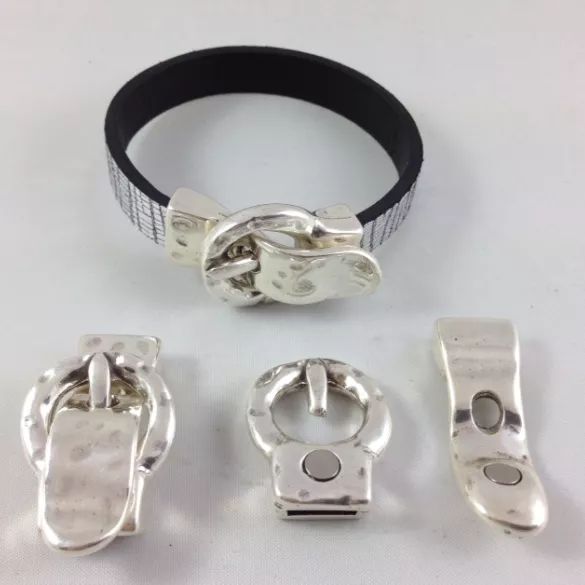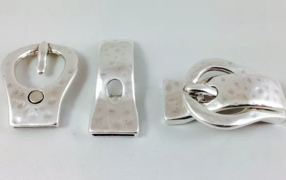 5 Fermoirs aimanté en boucle de ceinture martelé, en zamac pour cuir plat 10mm