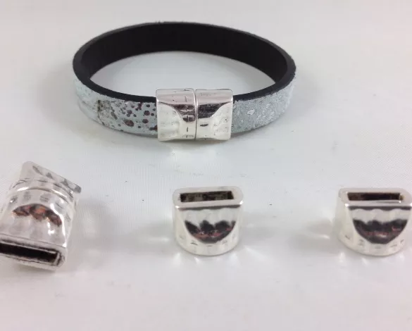 5 Fermoirs aimanté en boucle de ceinture martelé, en zamac pour cuir plat 10mm