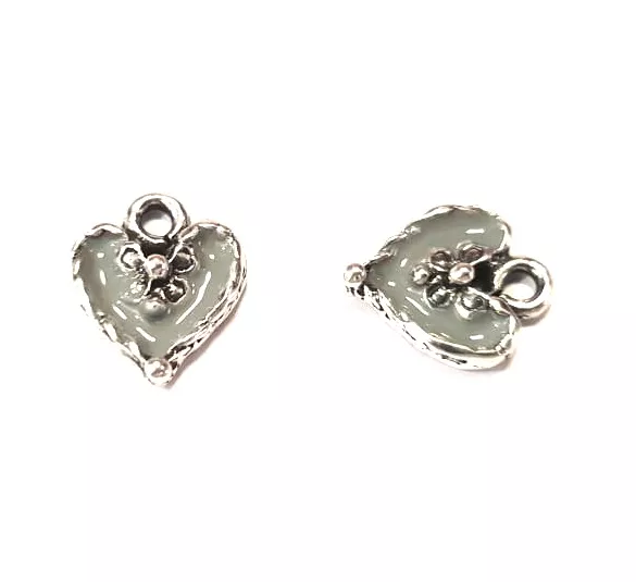Pendant coeur émaillé en étain Fabrication Françise - Rose poudré