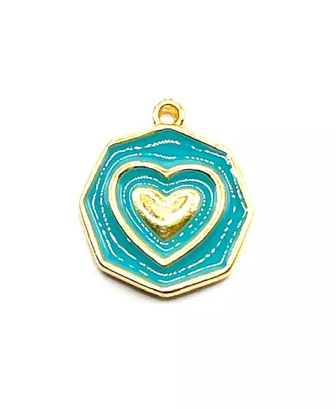 Pendant médaille hexagonale coeur en laiton émaillé - Blanc perlé