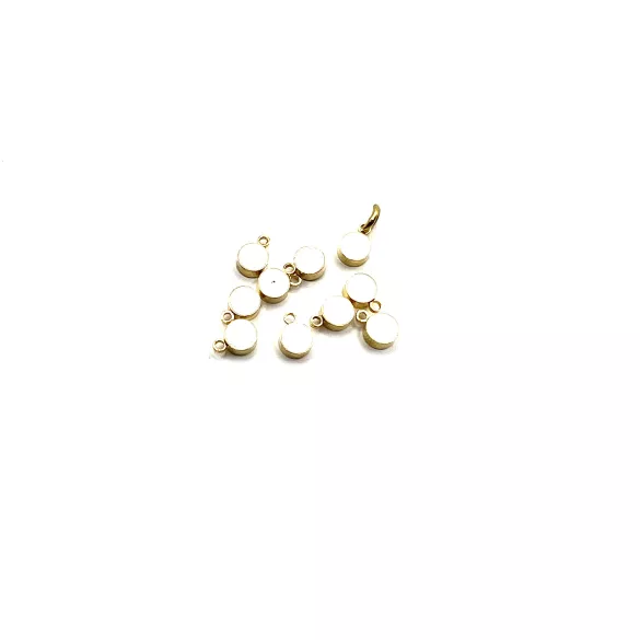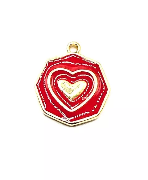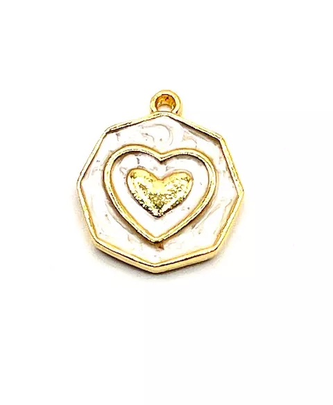 Pendant médaille hexagonale coeur en laiton émaillé - Blanc perlé