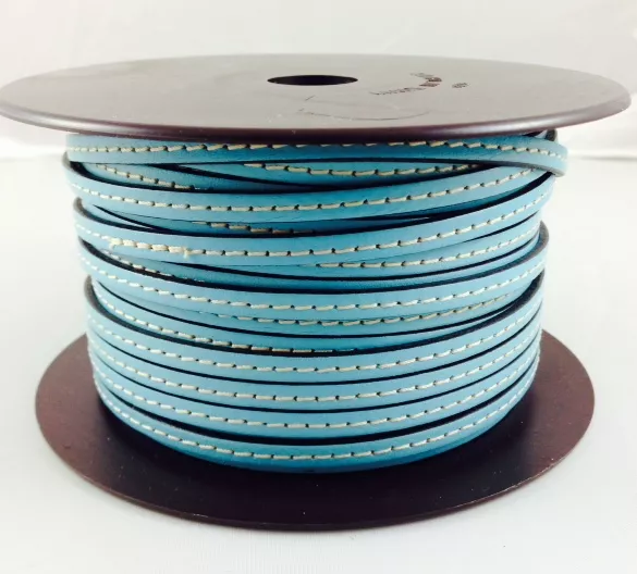 Cuir d'agneau plongé 5 mm double coutures-NOUVELLES COULEURS - Bleu azur