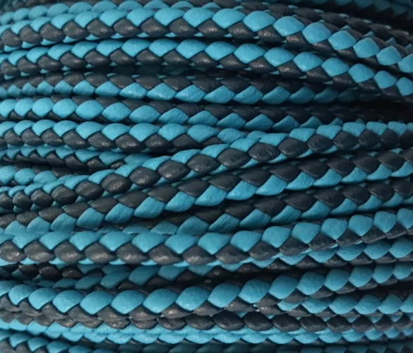 Cuir tressé rond 3mm en bicolore-nouvelles couleurs - turquoise et bleu marine