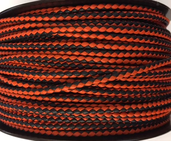 Cuir tressé rond 3mm en bicolore-nouvelles couleurs - orange et bleu marine