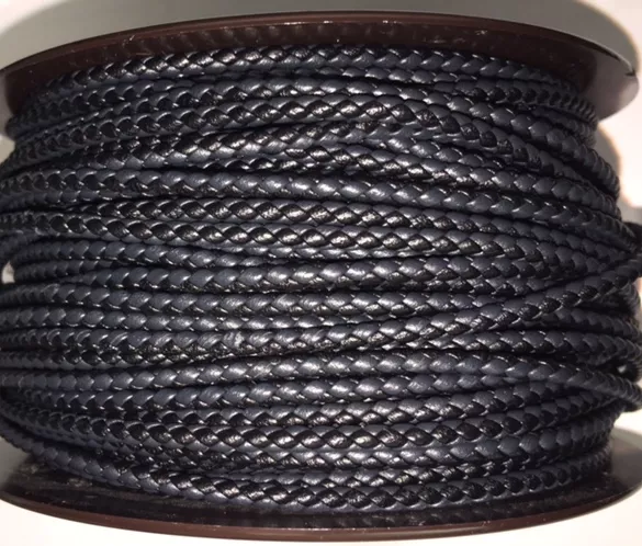 Cuir tressé rond 3-Qualité Joaillerie-nouvelles couleurs - bleu canard