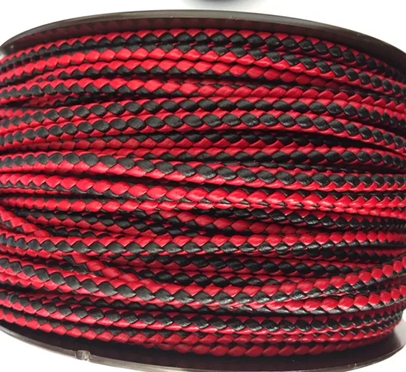 Cuir tressé rond 3mm en bicolore-nouvelles couleurs - rouge et noir