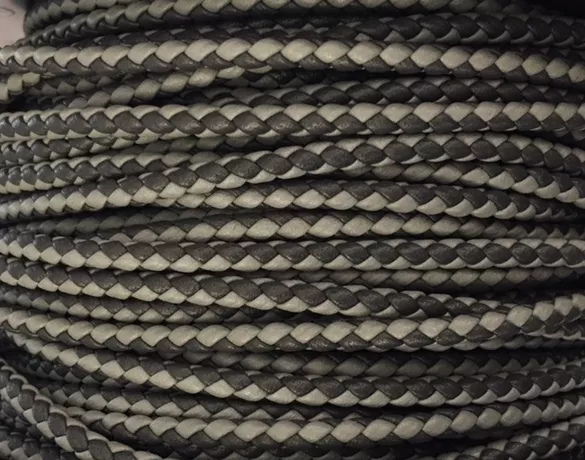 Cuir tressé rond 3mm en bicolore-nouvelles couleurs - gris foncé et gris clair gris foncé et noir