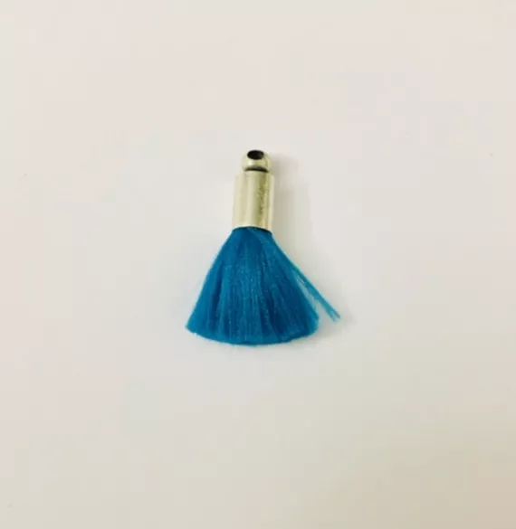 5Pompons avec embout laiton plaqué argent antique-20MM-15 couleurs - Bleu turquoise