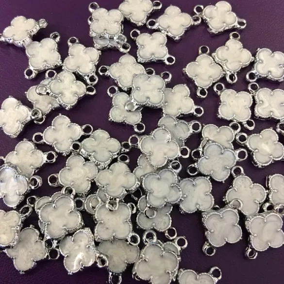 Intercalaire trèfle à 4 feuilles émaillés base argenté - Blanc perlé