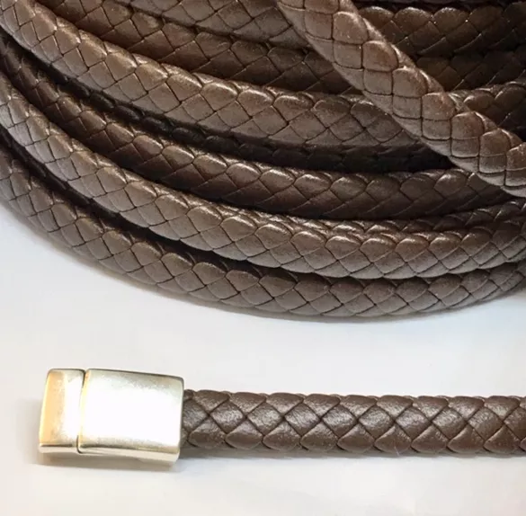Cuir tressé aplati, double face, haut de gamme pour Homme, 8.50 mm - Marron