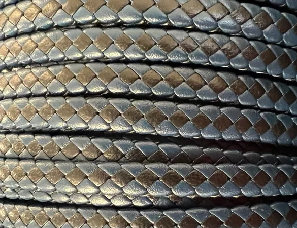 Cuir tressé aplati, double face, haut de gamme pour Homme, 8.50 mm - bleu canard