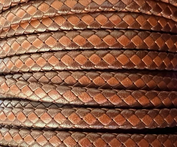 CUIR DE CHEVRE TRESSE BI-COLORE APLATI 6MM.HAUT DE GAMME - Marron moyen